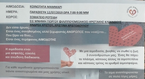 Αιμοδοσία Παρασκευή 12/7/2019 ώρα 7.00-9.00μμ