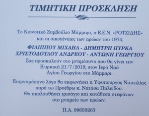 Το Κοινοτικό Συμβούλιο Μάμμαρι, η Ε.Ε.Ν. ΡΟΤΣΙΔΗΣ και οι οικογένειες των ηρώων του 1974,