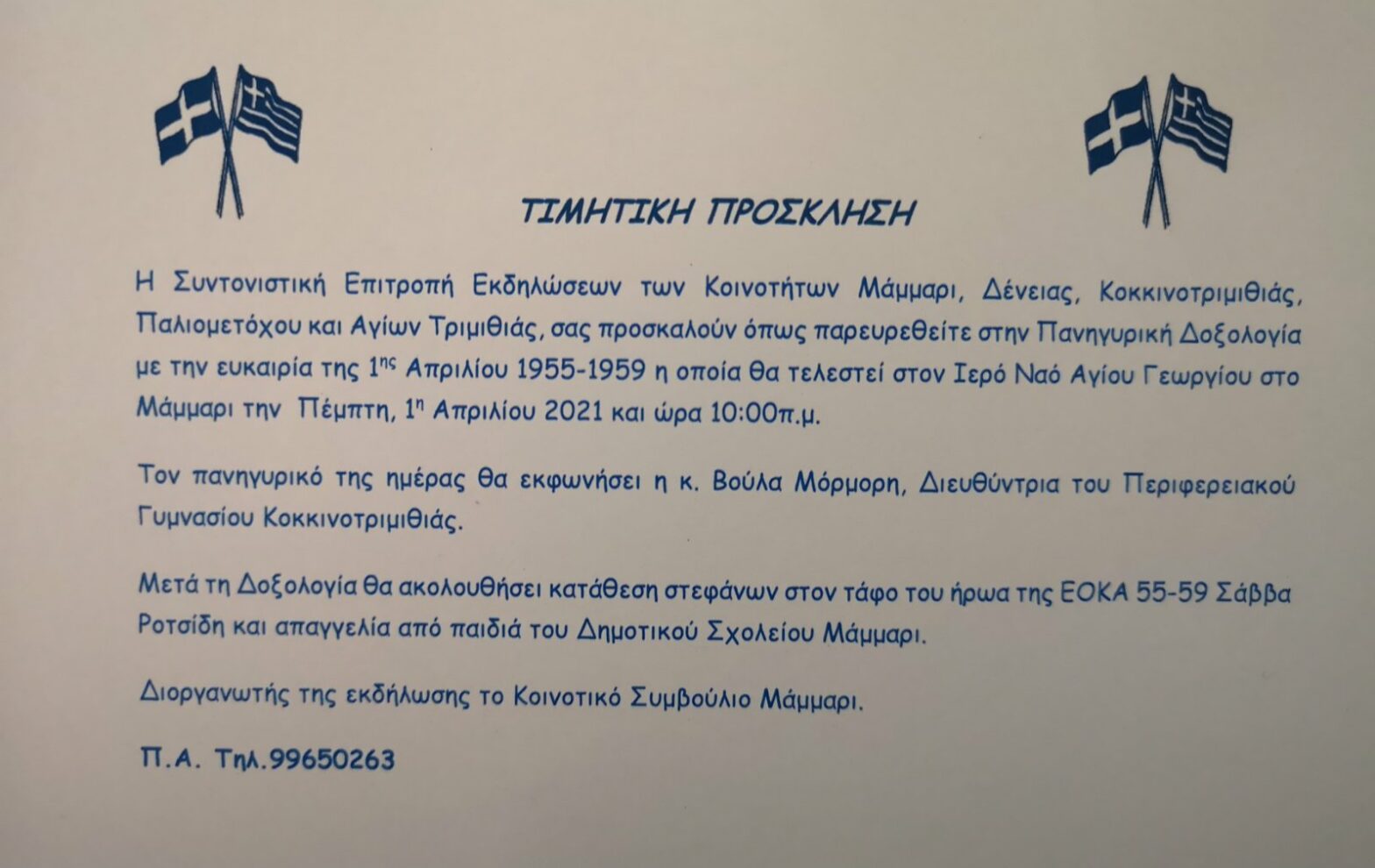 Πανηγυρική Δοξολογία για την 1η Απριλίου