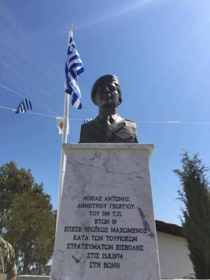 Tελέστηκε σήμερα Κυριακή 24/7 στο Μοσφίλι το μνημόσυνο και τα αποκαλυπτήρια του ανδριάντα του ήρωα της τούρκικης εισβολής, Αντώνη Γεωργίου, παρουσίας αντιπροσώπων της εκκλησίας, βουλευτών και εκπροσώπων της κυβέρνησης.